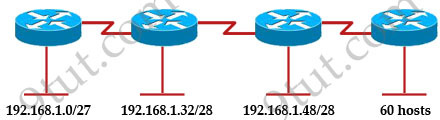 60 hosts < 64 = 26 -> we need a subnet mask of at least 6 bit 0s -> “/26″. The question requires “wasting the fewest addresses” which means we have to allow only 62 hosts-per-subnet -> B is correct.