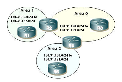 Router R2 has been configured with the following OSPF router command: area 1 range 130.31.96.0 255.255.224.0