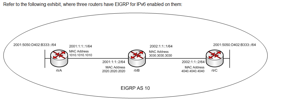 A neighboring EIGRP router fails Its advertised distance (AD) to network 10.10.10.0 was 2 and the feasible distance (FD) was 3.