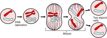 The cells that are made by mitosis are genetically identical. Before cells divide, DNA replication must take place. This is so that each cell produced still has two copies of each chromosome.