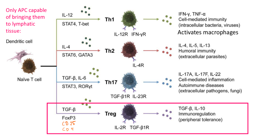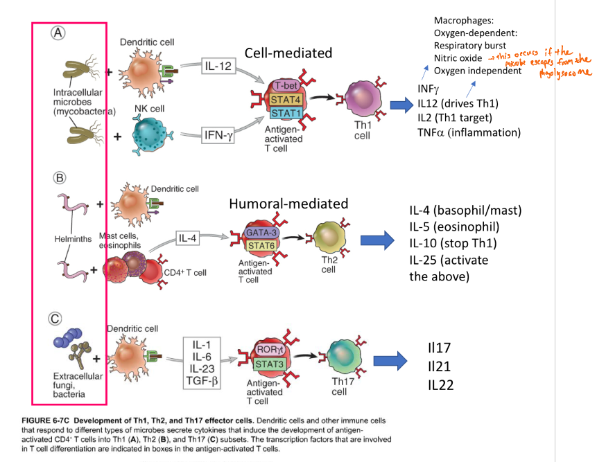 describe the development of subsets of CD4+ T cells (Th1, Th2 and Th17 cells)