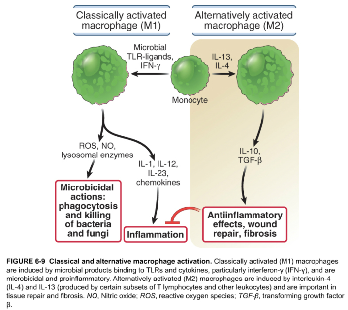 describe classically activated macrophages (M1) vs alternatively activated macrophages (M2)