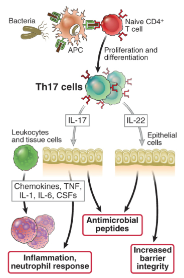 describe the function of Th17, the cyotkines secrereted, their functions and Th17 defects