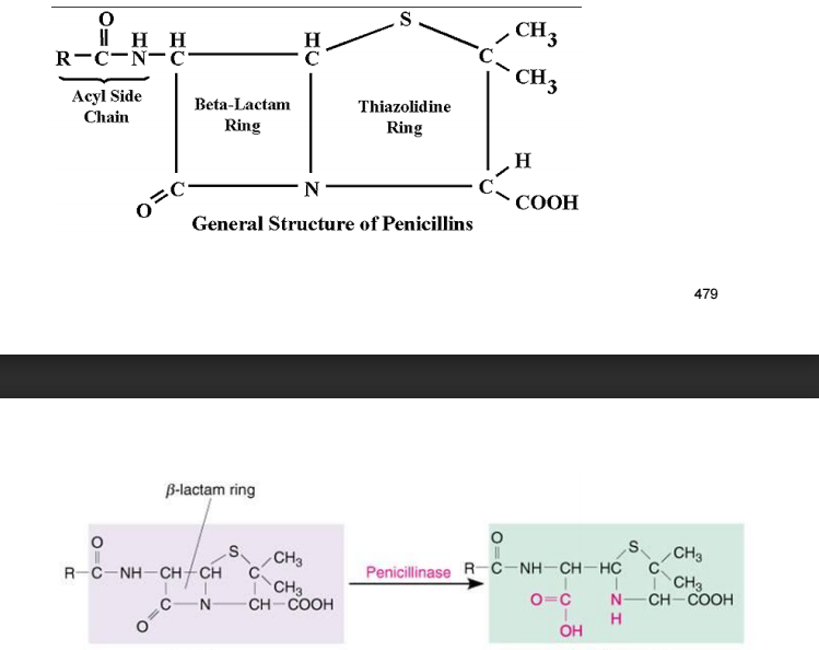 Mechanis of resistance: Penicillinase in bacteria (a type of β-lactamase) cleaves β-lactam ring.