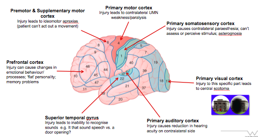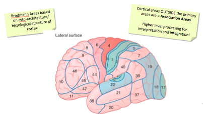 Describe the areas of the cortex that are shown and their function