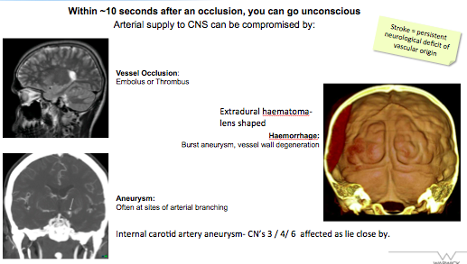 What can compromise arterial blood supply to the CNS?