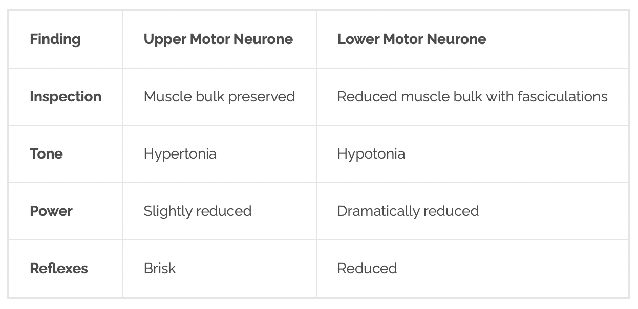 What is the differntial diagnosis of an upper motor neurone lesion?