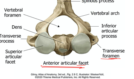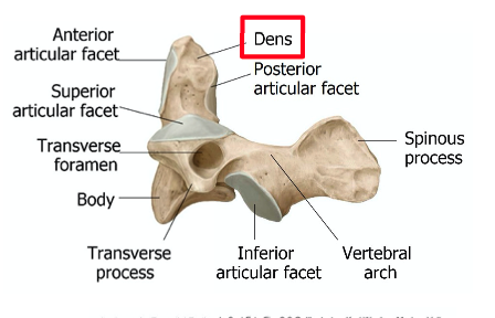 c1 and c2 are articulated. the dens of C2 connects with the facet of the dens is C1 and acts as a hinge point.