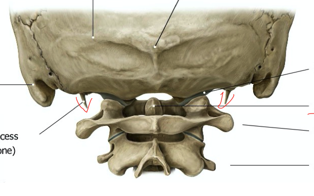 C1 articulates articulates with the occipital bone of the skull at the __ __ __. this allows for a yes/nodding movement.