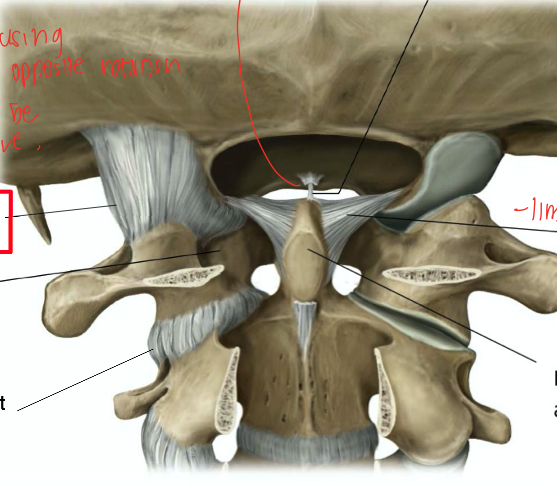 two ligaements run obliquely form the side of the dens to the left and right inner margein of the foramen magnum. the _ ligaments limit rotation of the head.