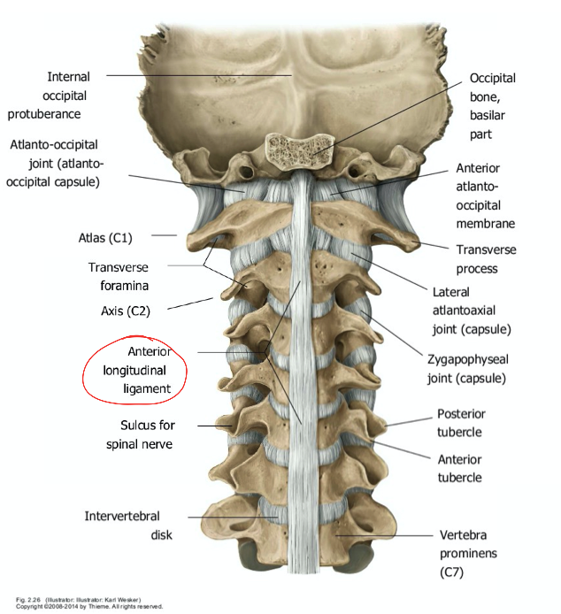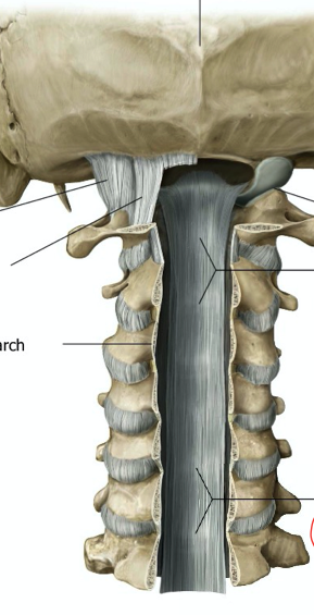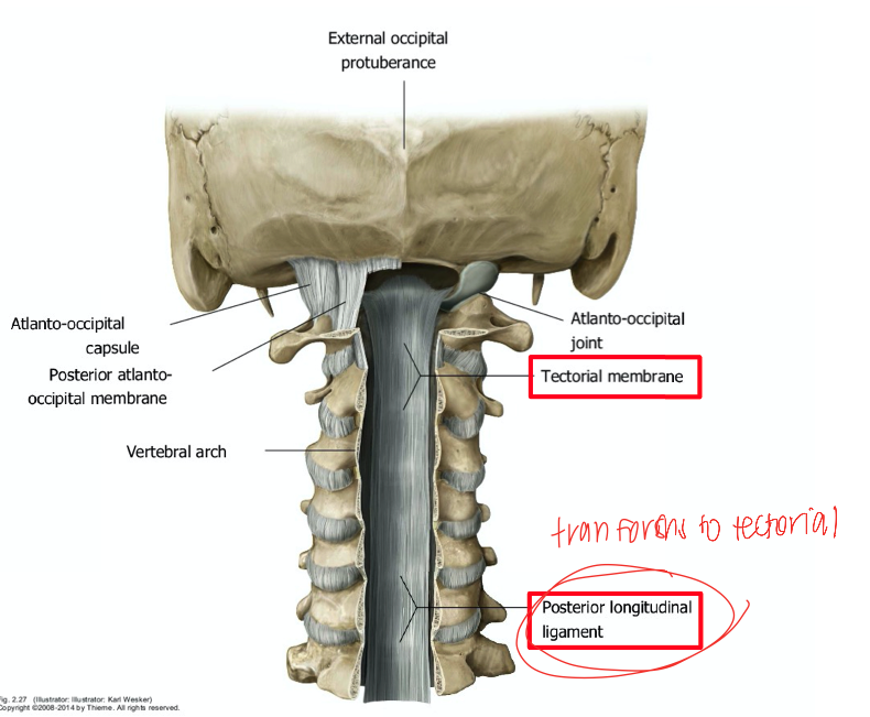the posteiror ligament transitions to the tectoral ligament at the skull.