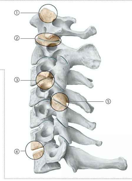 the superior articular facet of C2 that articulates with the inferior articulation of C1 is horixontally oriented, allowing C1 to slide relative to C2.