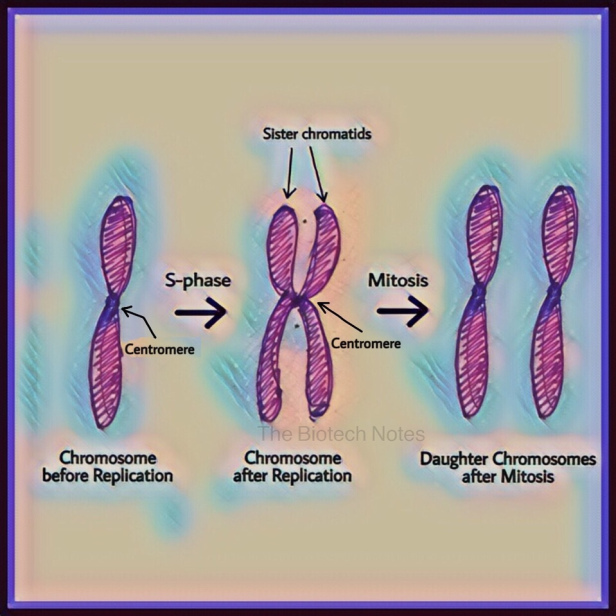 ..that are copied and distrubuted so each daughter cell receiveds a diploid (2n) set identical to the parent.