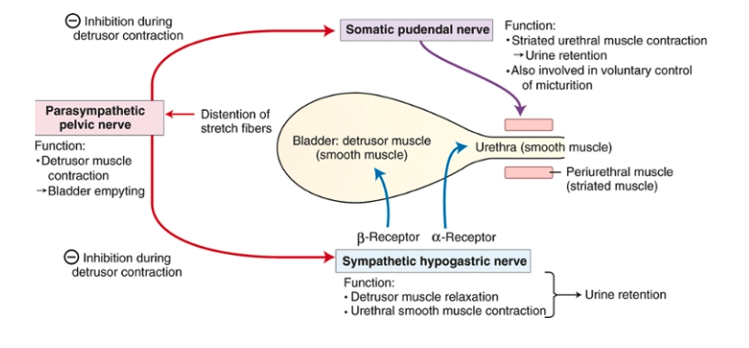 * Urethral smooth muscle tone (most prevalent in the cranial 1/2 of the urethra)