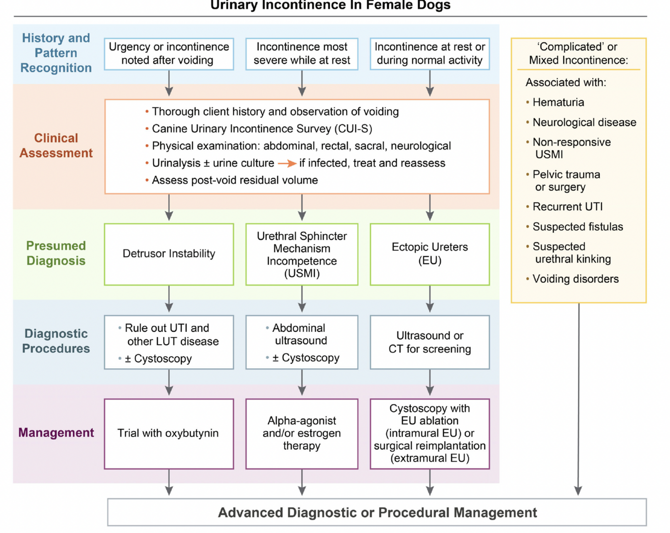 Mostly a diagnosis of exclusion. Need to rule out other causes of incontinence such as ectopic ureters or conformational abnormalities causing overflow (recessed vulva)