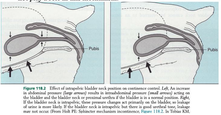 Bitches have no true bladder neck sphincter, so continence is maintained by many interacting factors