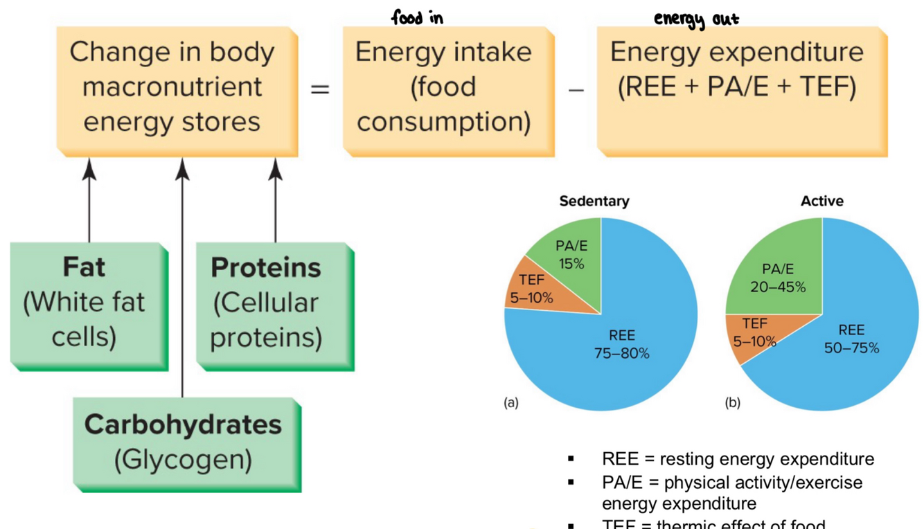 change in body energy stores = food in - energy out