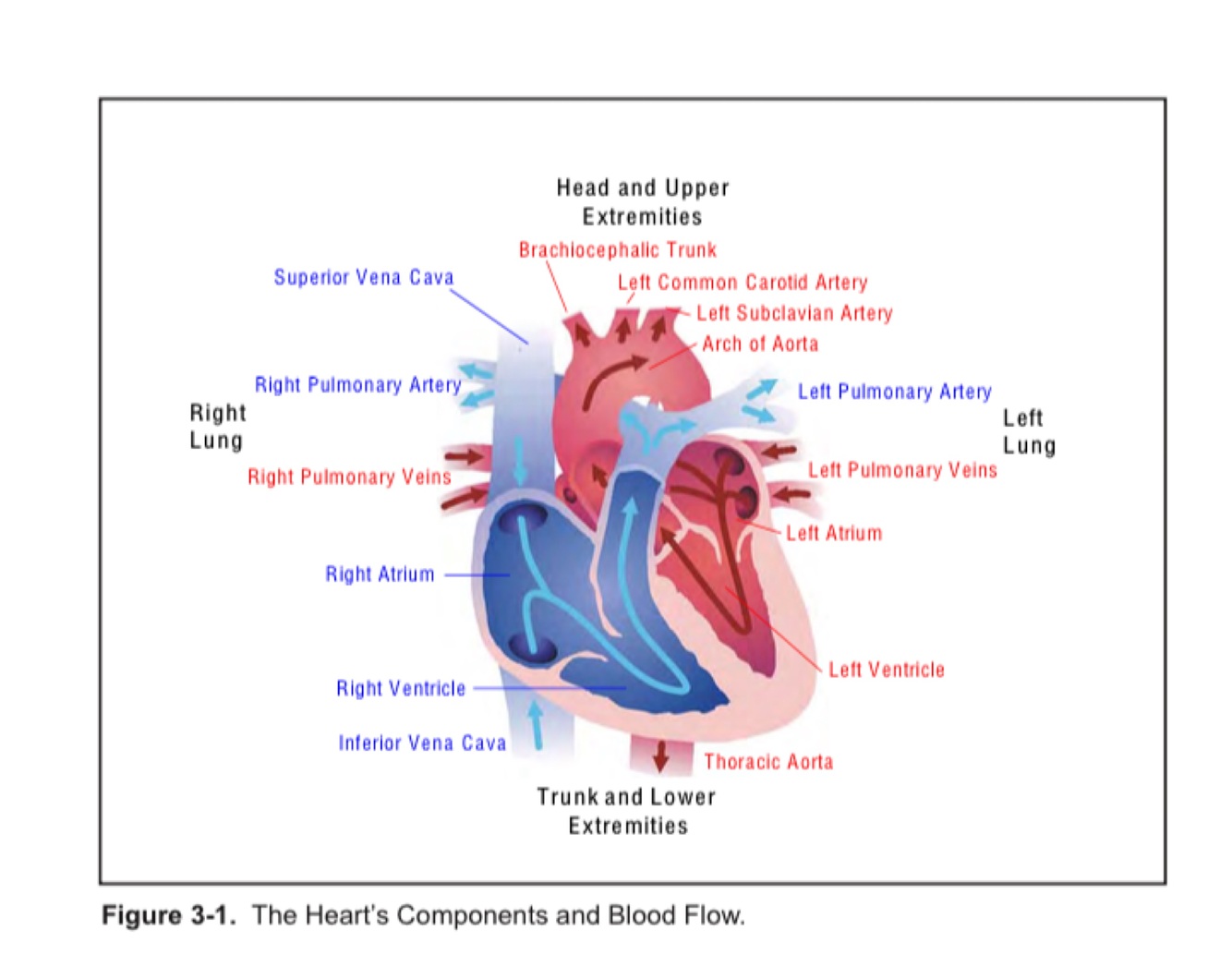 A closed system of tubes including lung and tissue capillaries, heart, arteries, and veins