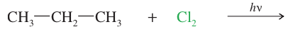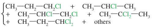 It usually produces mixtures of products because there are different kinds of hydrogen atoms that can be abstracted. Also, more than one halogen atom may react, giving multiple substitutions. For example, the chlorination of propane can give a messy mixture of products.