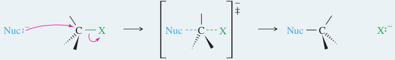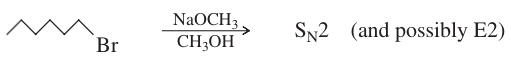 Primary halides usually undergo the SN2 reaction, occasionally the E2 reaction. Unless they are resonance-stabilized, primary halides rarely undergo first-order reactions, because primary carbocations are relatively unstable. With good nucleophiles, SN2 sub- stitution is usually observed. With a strong base, E2 elimination may also be observed.