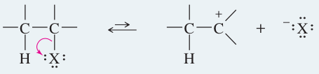 Some nucleophiles and bases favor substitution or elimination. To promote elimination, the base should readily abstract a proton but not readily attack a carbon atom. A bulky strong base, such as tert-butoxide [-OC(CH3)3], enhances elimination. Higher temperatures also favor elimination in most cases, because more molecules are formed, and ∆S < 0. As the temperature increases, the free energy term, -T∆S, becomes more negative and more favorable for elimination. To promote substitution, we need a good nucleophile with limited basicity: a highly polarizable species that is the con-jugate base of a strong acid. Bromide (Br-) and iodide (I-) are examples of good nucleophiles that are weak bases and favor substitution.