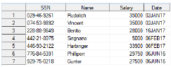 Consider the following DATA step. Based on the sample input file below, in what order are the variables stored in the new SAS data set? data work.fin2; set cert.finance; if Salary>25000 then Raise=0.03; else Raise=0.05; NewSalary=(Salary*Raise)+Salary; run;