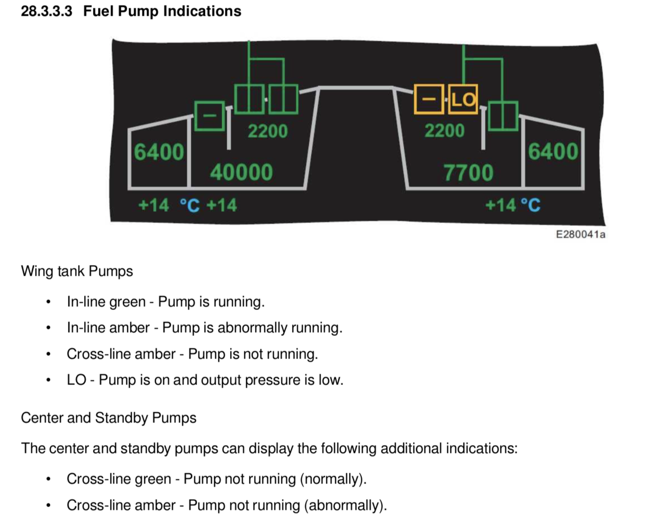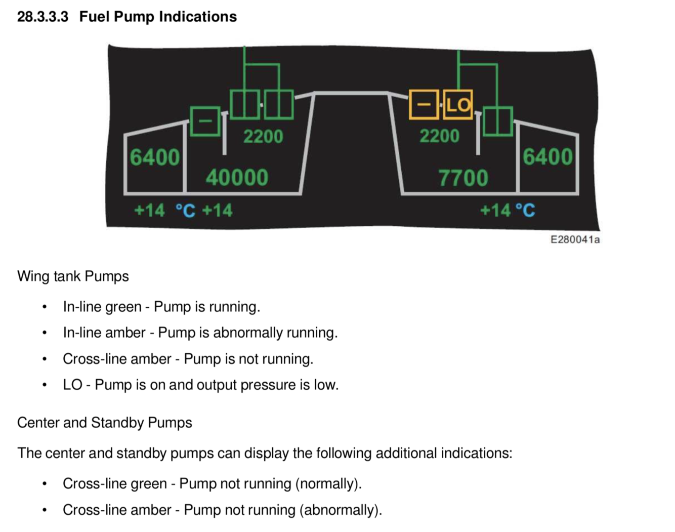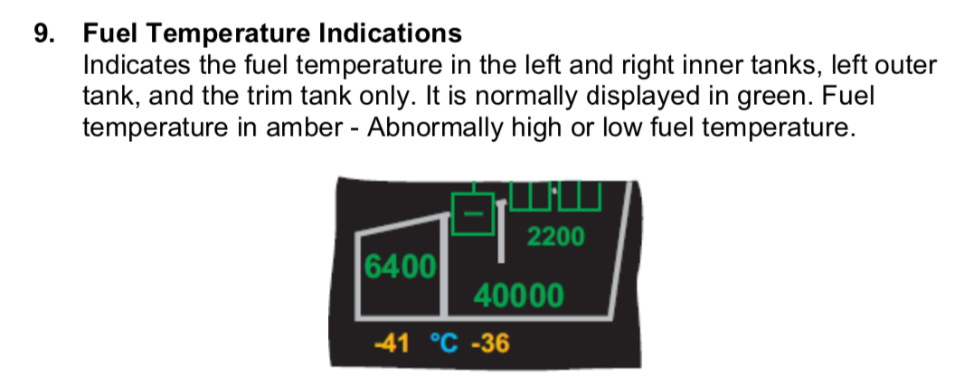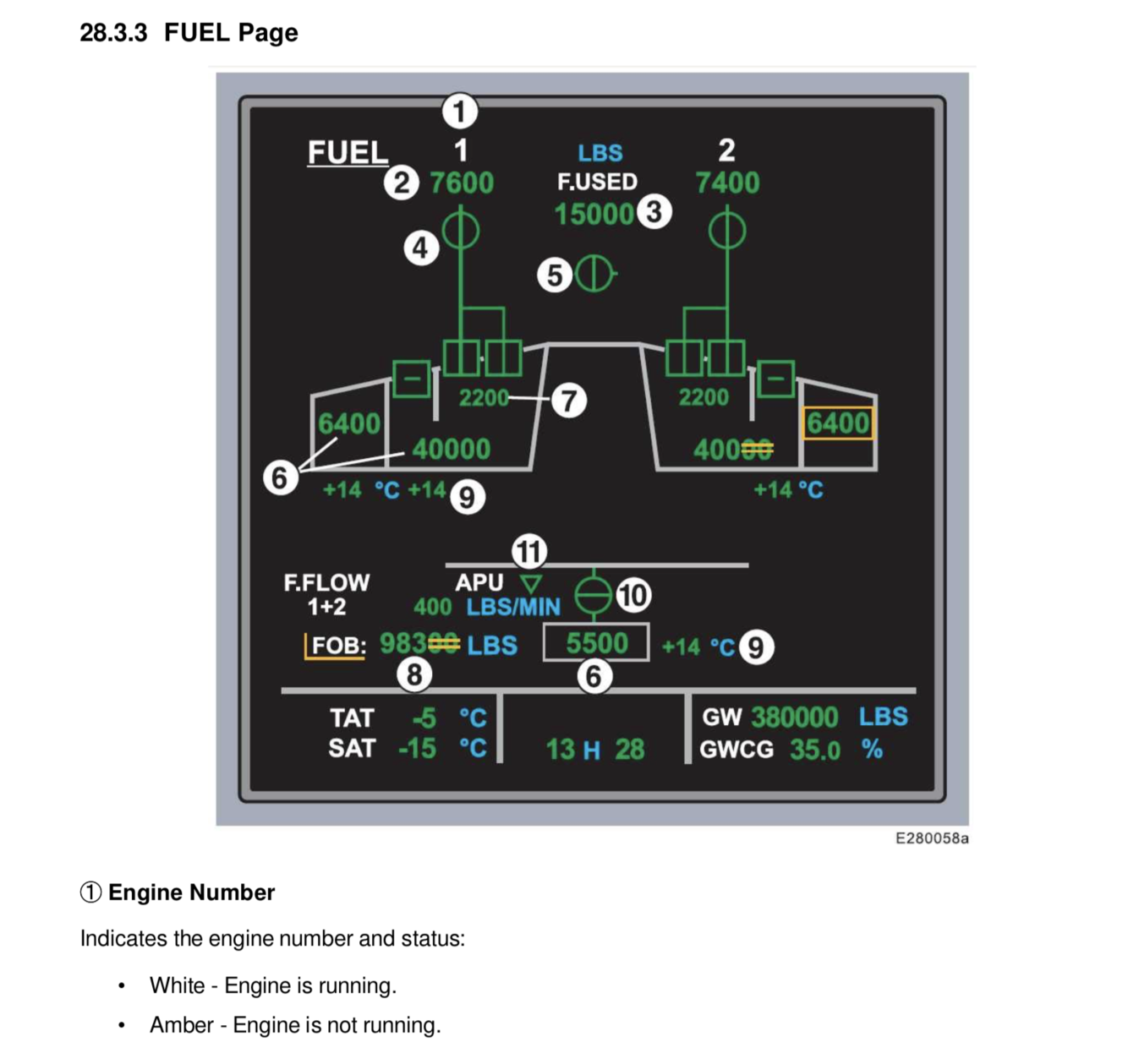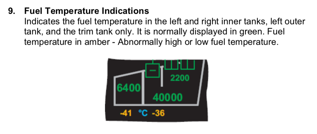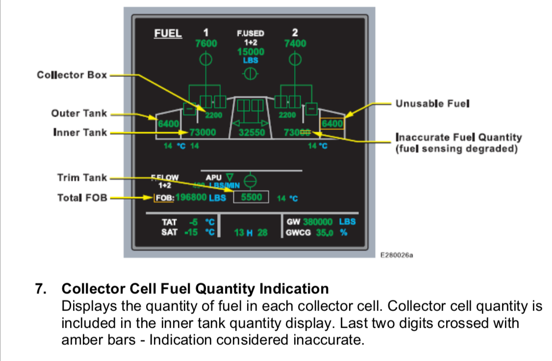 Partial amber box around fuel value (center tank only) - Center tank fuel below 33,000 lbs is unusable.