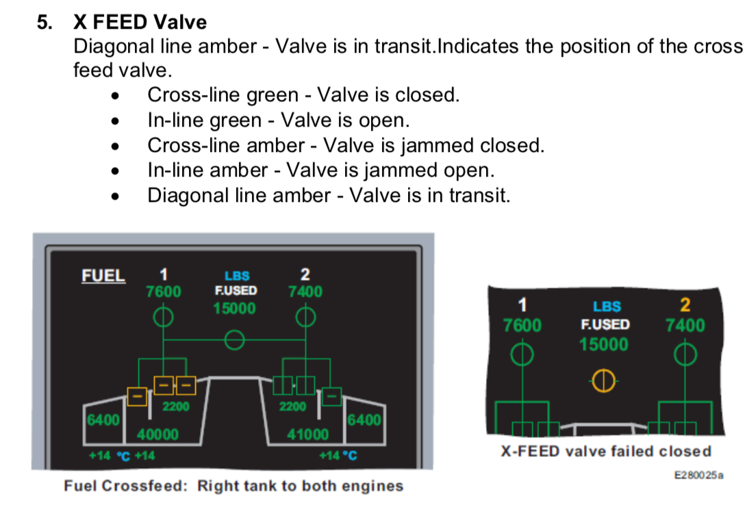 Amber box around fuel value - Fuel in the tank is unusable (trim and outer tanks only).