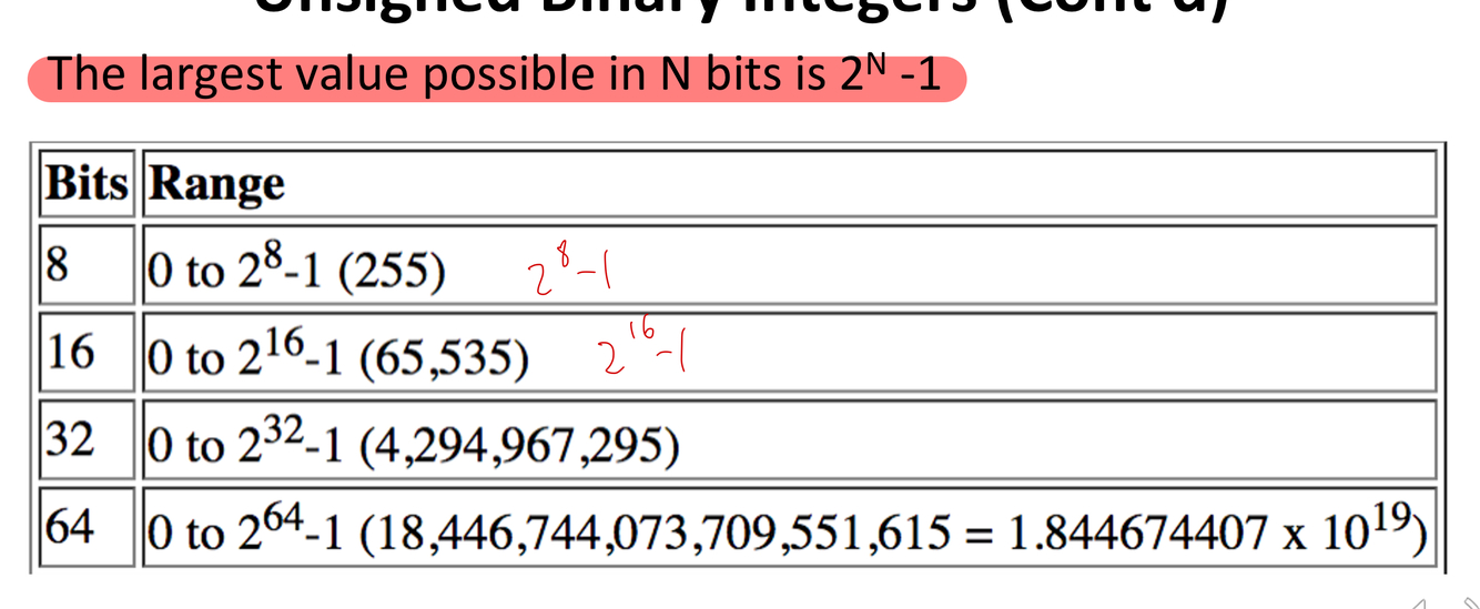 Modern computers support binary integers of 8, 16, 32, or 64 bits