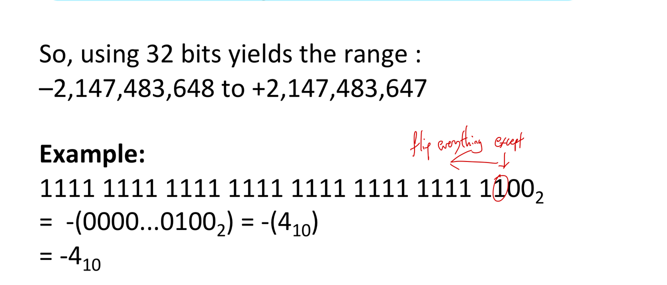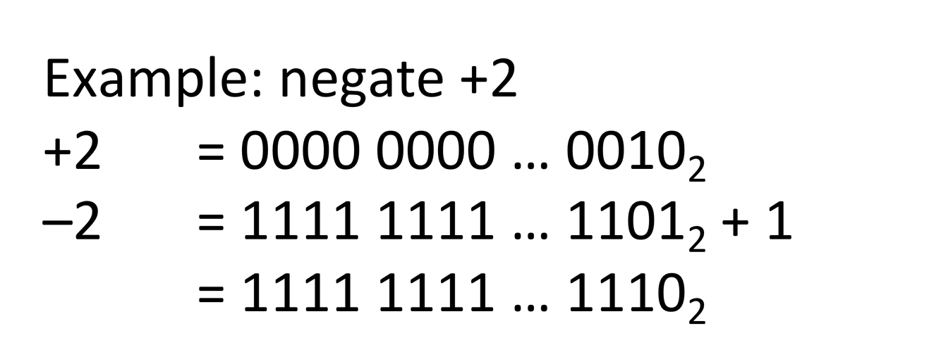 Suppose we want to come up with the 1’s complement representation for the number -2 in base 10…