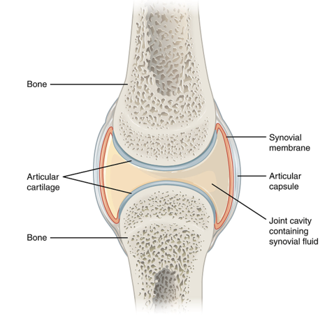 Synovial membrane surrounds the joint capsule with a synovial fluid.