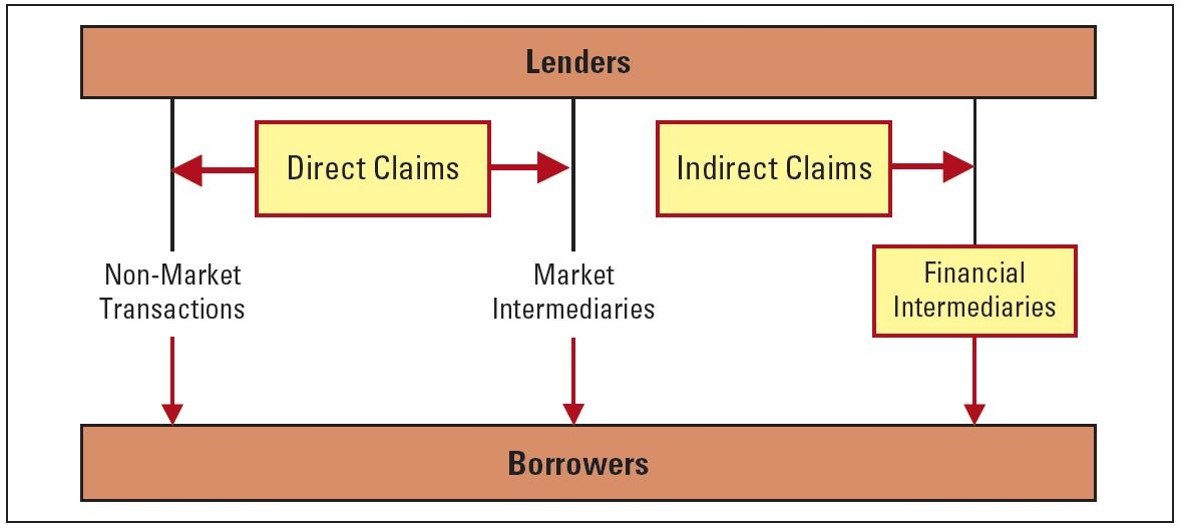 borrow form financial institution (people have loaned their money (savings) to financial institutions - still direct intermediation between the lender and borrower except some help is needed (no one has enough money to lend all the amount, usually)
