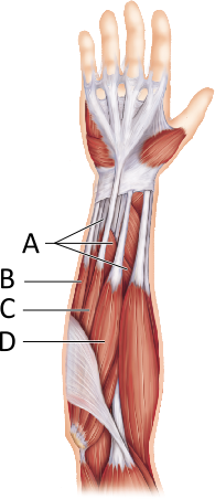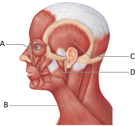 What muscle is represented by letter D?