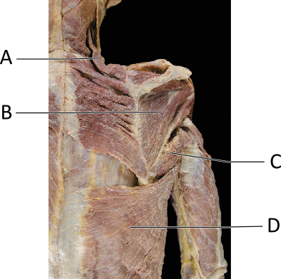 Which of the following letters represents the infraspinatus muscle?