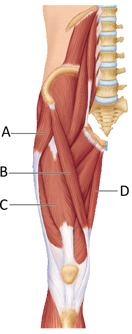 Which of the following letters represents the sartorius muscle?