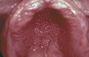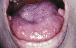 notice the multiple mucosal neromas on the tongue and the bilateral neuromas of the commissural mucosa