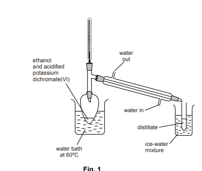 Stage 1: Add NaOH under reflux to form an alcohol Stage 2: Oxidise with acidified potassium dichromate under gentle heat and distill off