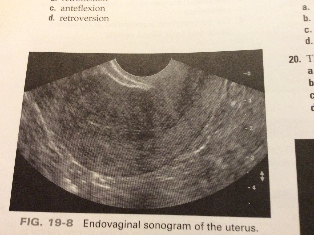 In this sagittal sonogram, the uterus is lying in which of the following positions?