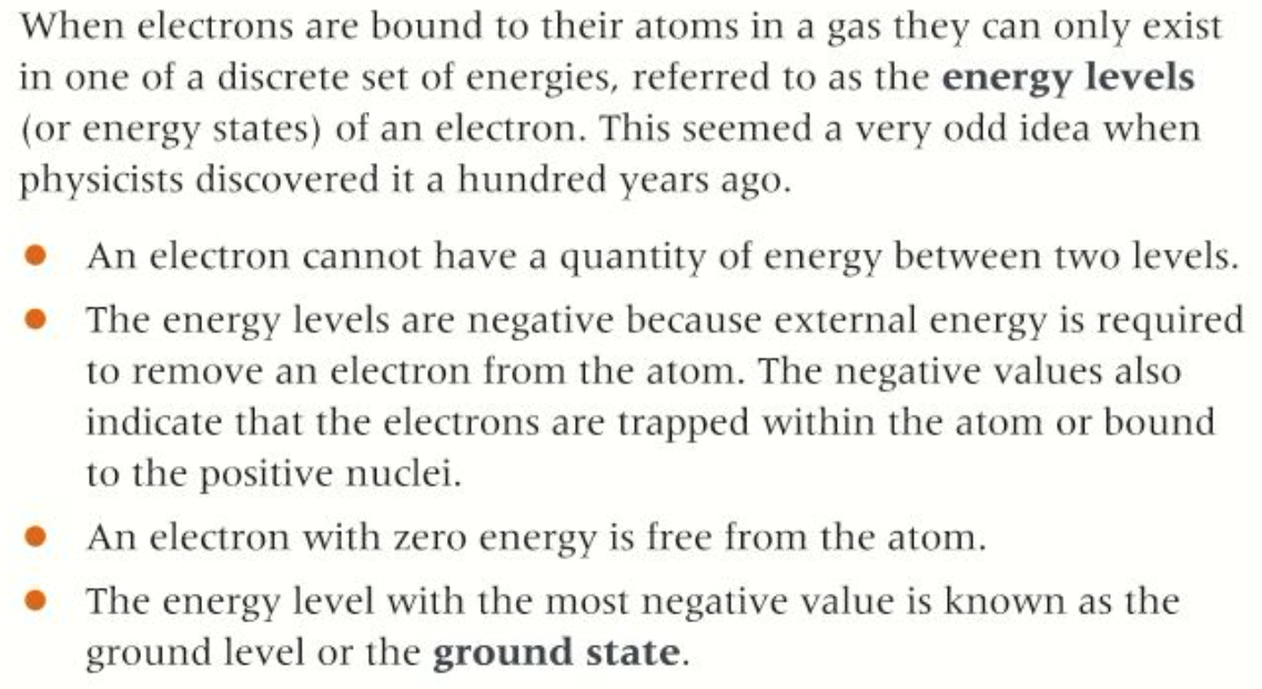 What are the 4 rules about energy levels of an electron?