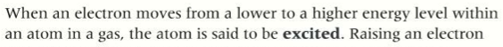 What is it called when an electron moves from a lower to a higher energy level?