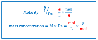 Similarly, Molarity times mass in Daltons gives the mass concentration of a solution