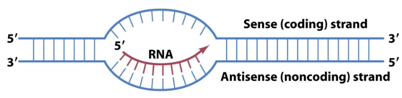 The antisense strand (complimentary). The mRNA is identical to the sense strand. Thymine gets replaced with uracil in RNA.