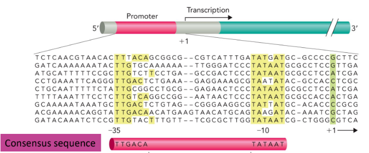 How is the strength of a promoter sequence determined and what does that mean for the transcription rate?