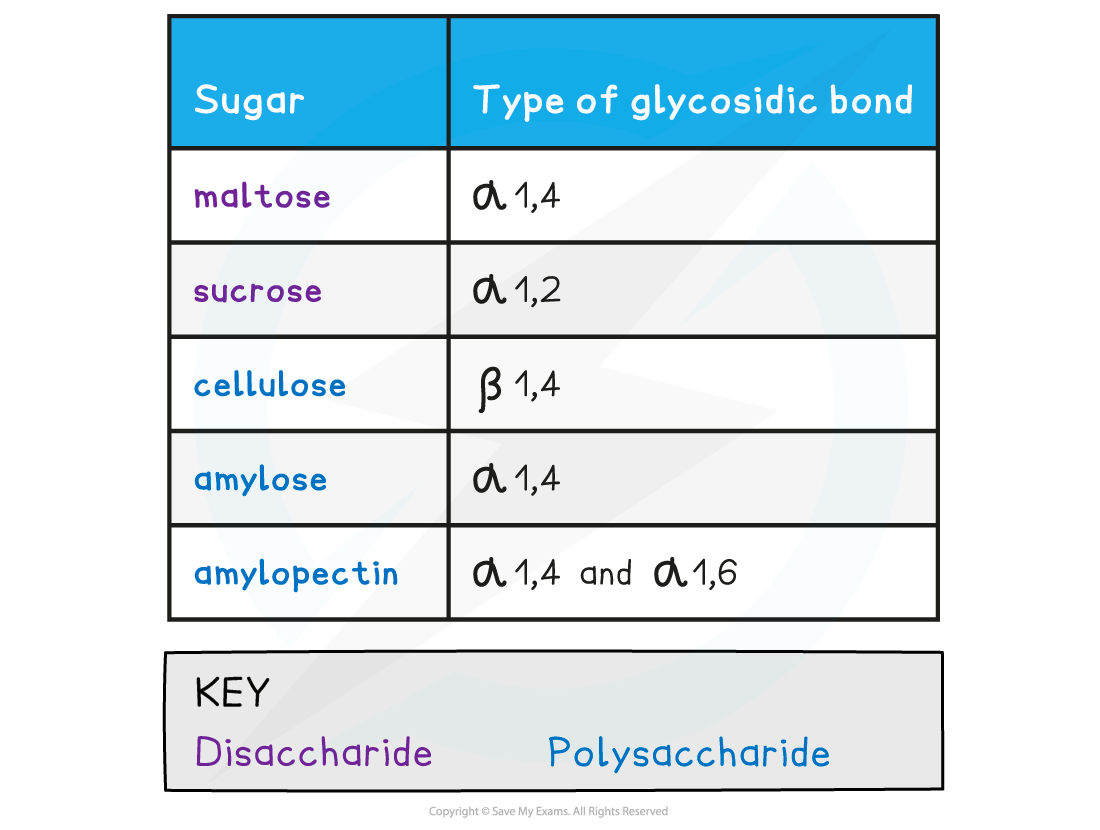 Types of Glycosidic Bonds Table