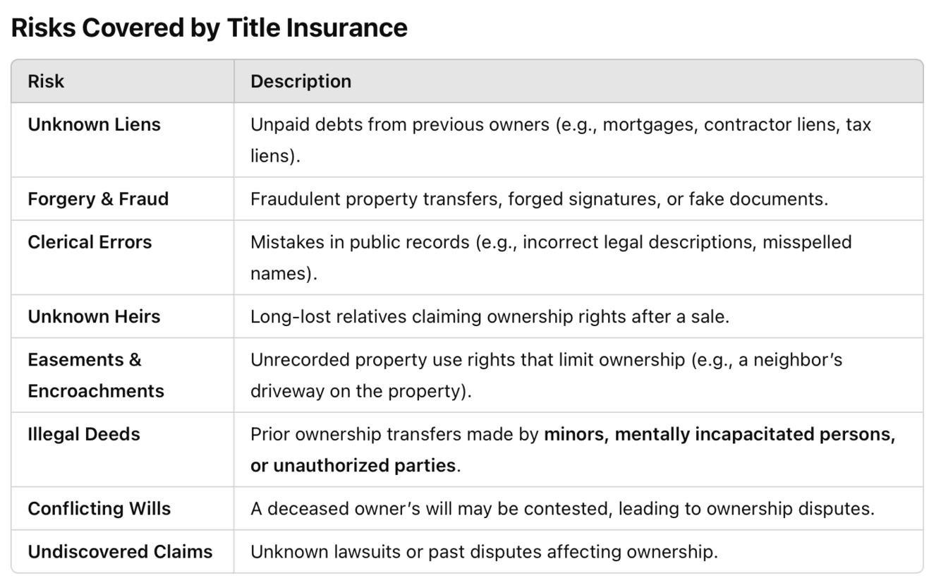 What is Title Insurance, and what risks does it protect against?