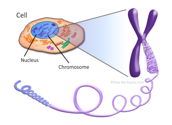 The threadlike structures within the nucleus that controls the functions of growth, repair, and repoduction for the body