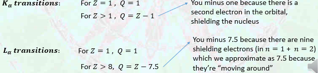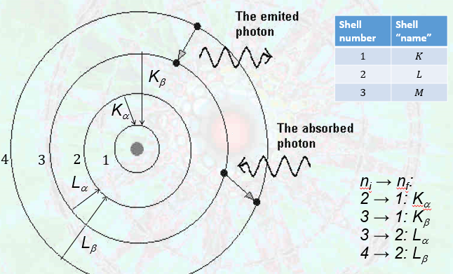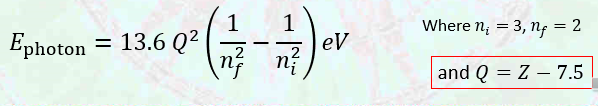 K_πΌ electron transitions energy of the emitted photon is given by: