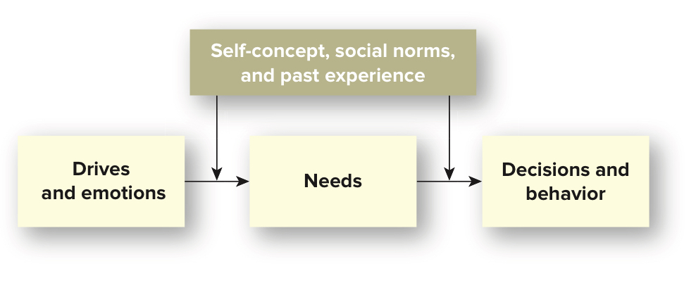 Explain how drives influence motivation and behavior and the role of social norms, past experience and personal values.