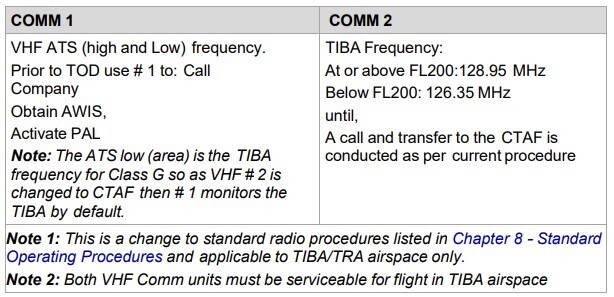 To achieve the requirements of Jeppesen ATC for flights approaching or in TIBA airspace the following frequency management is to be adopted:
