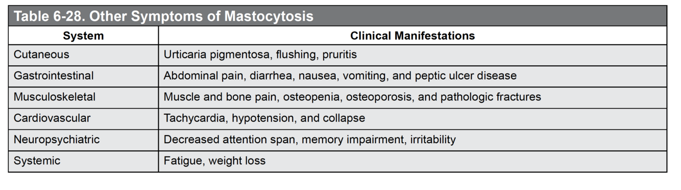review “other symptoms of mastocytosis”